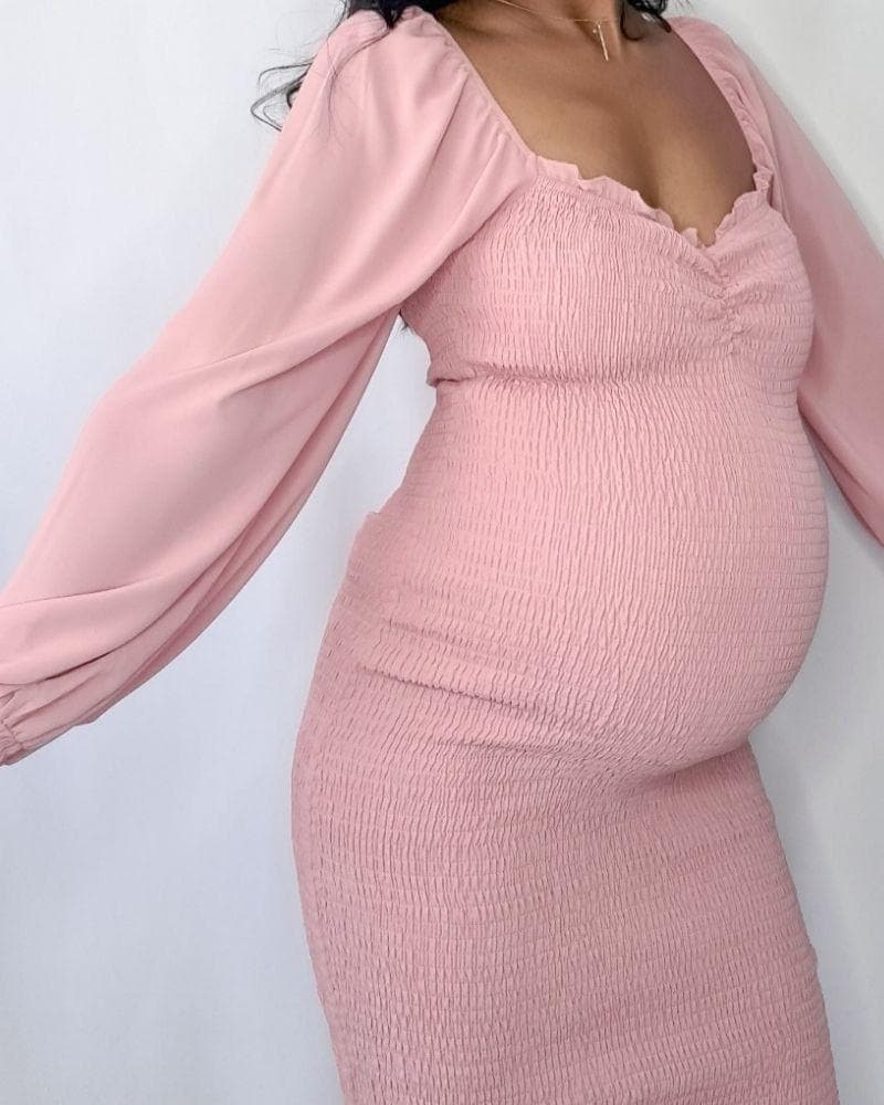 What dreams are made of, the most gorgeous shirred maternity dress that shows off your bump in the most perfect way.
